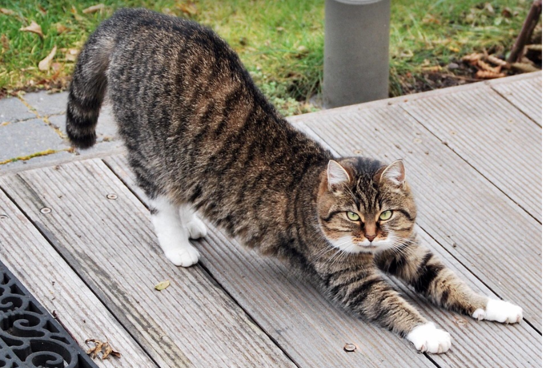 - 고양이 자세 스트레칭: 척추와 복부 자극